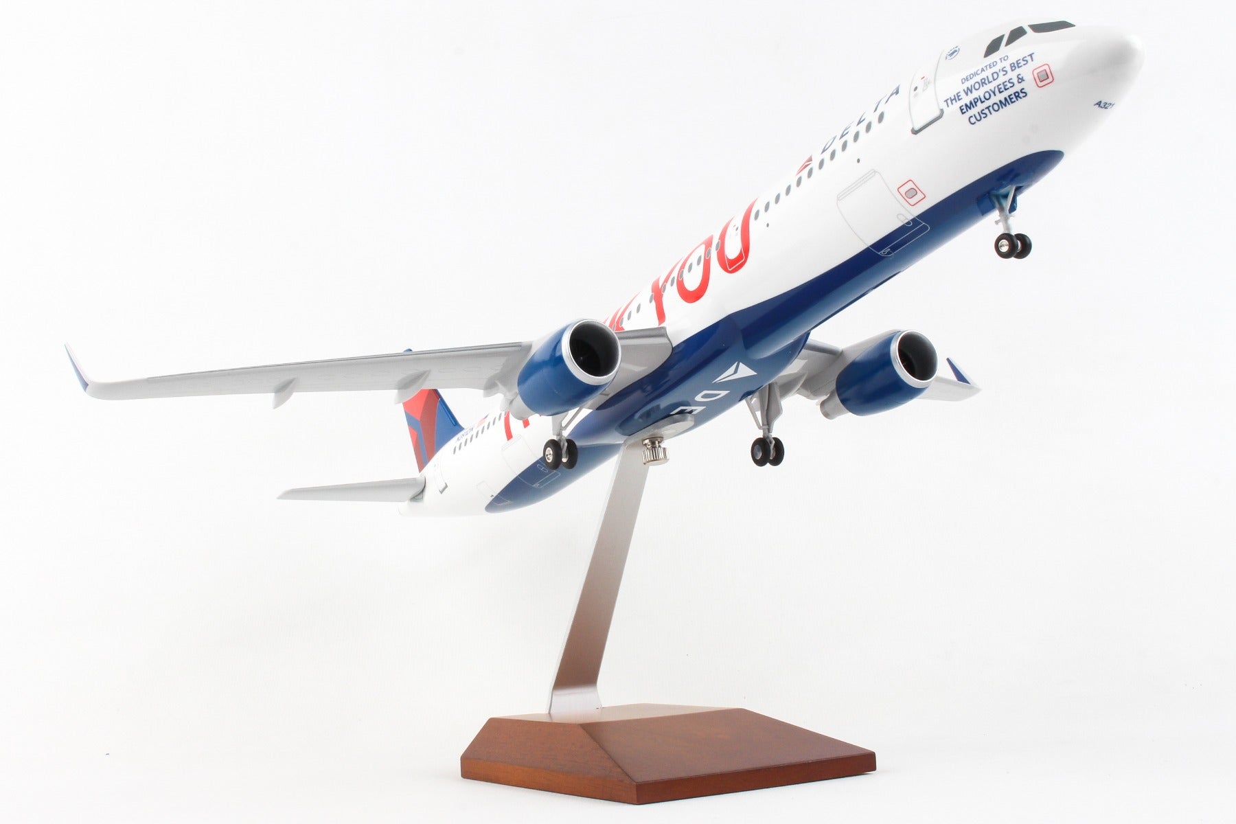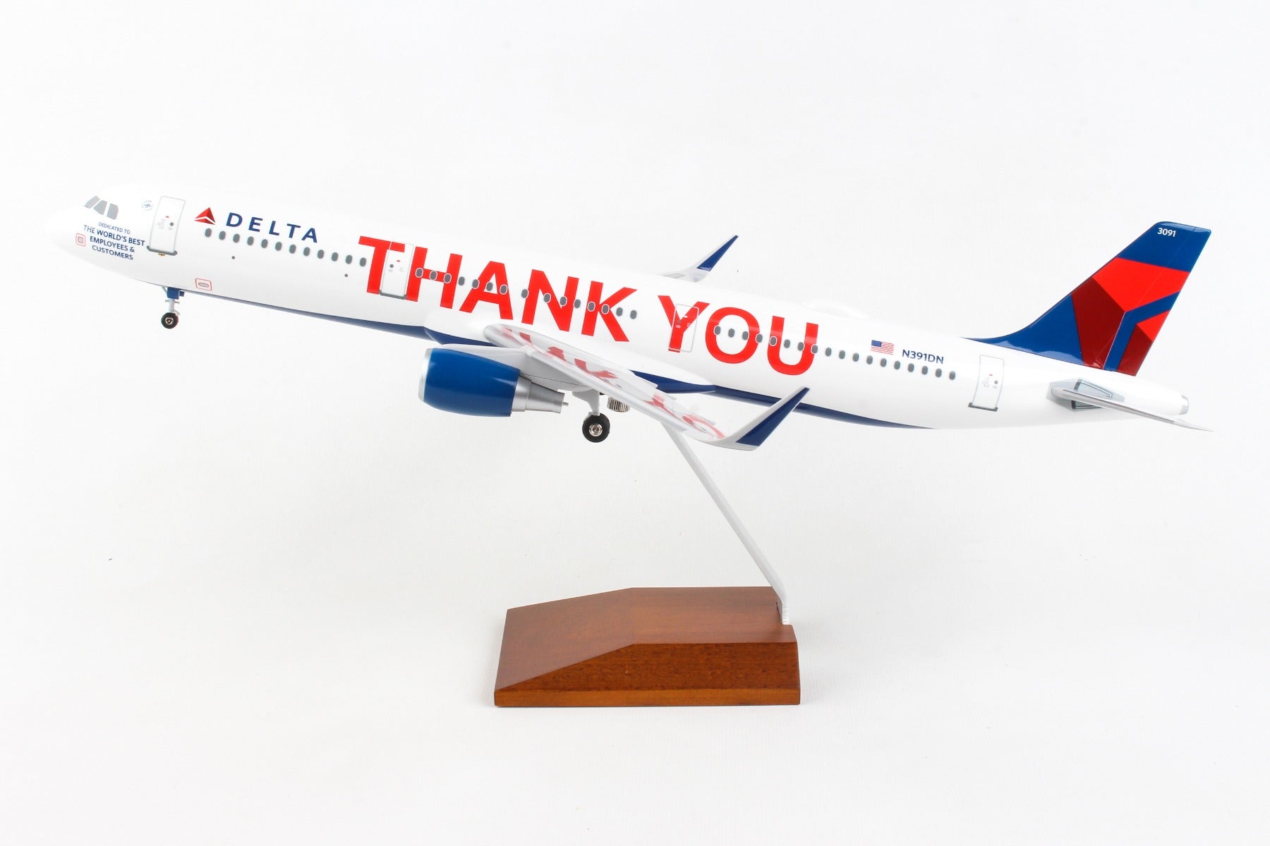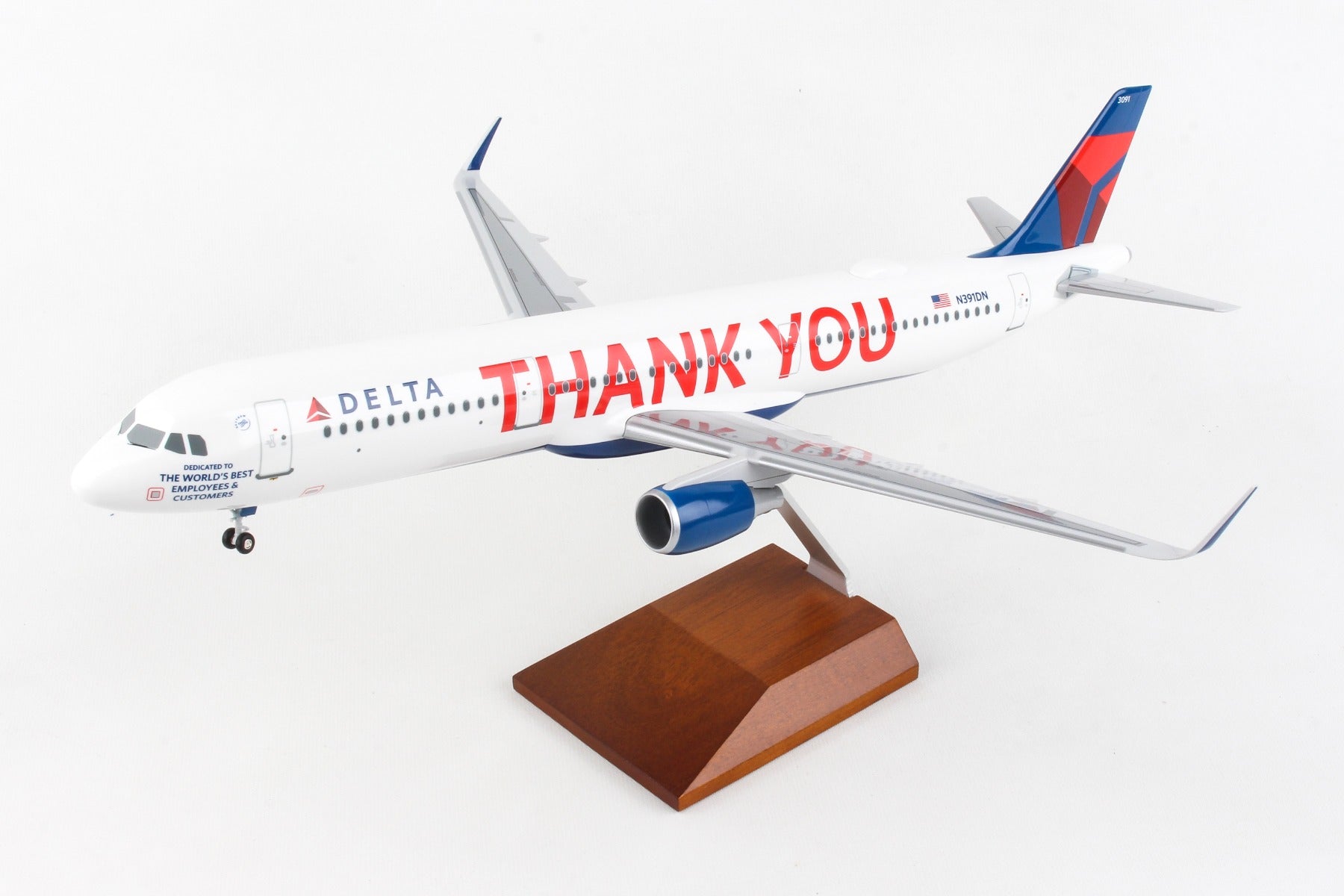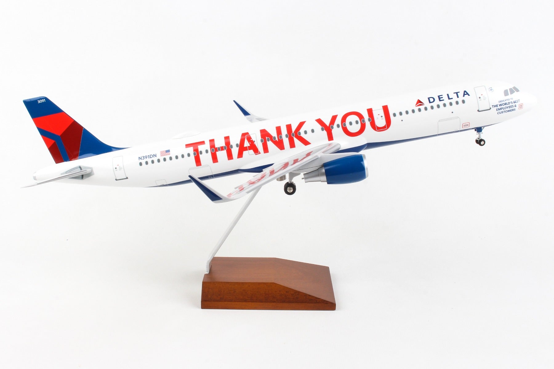 SKYMARKS DELTA A321 1/100 THANK YOU W/WOOD STAND & GEAR