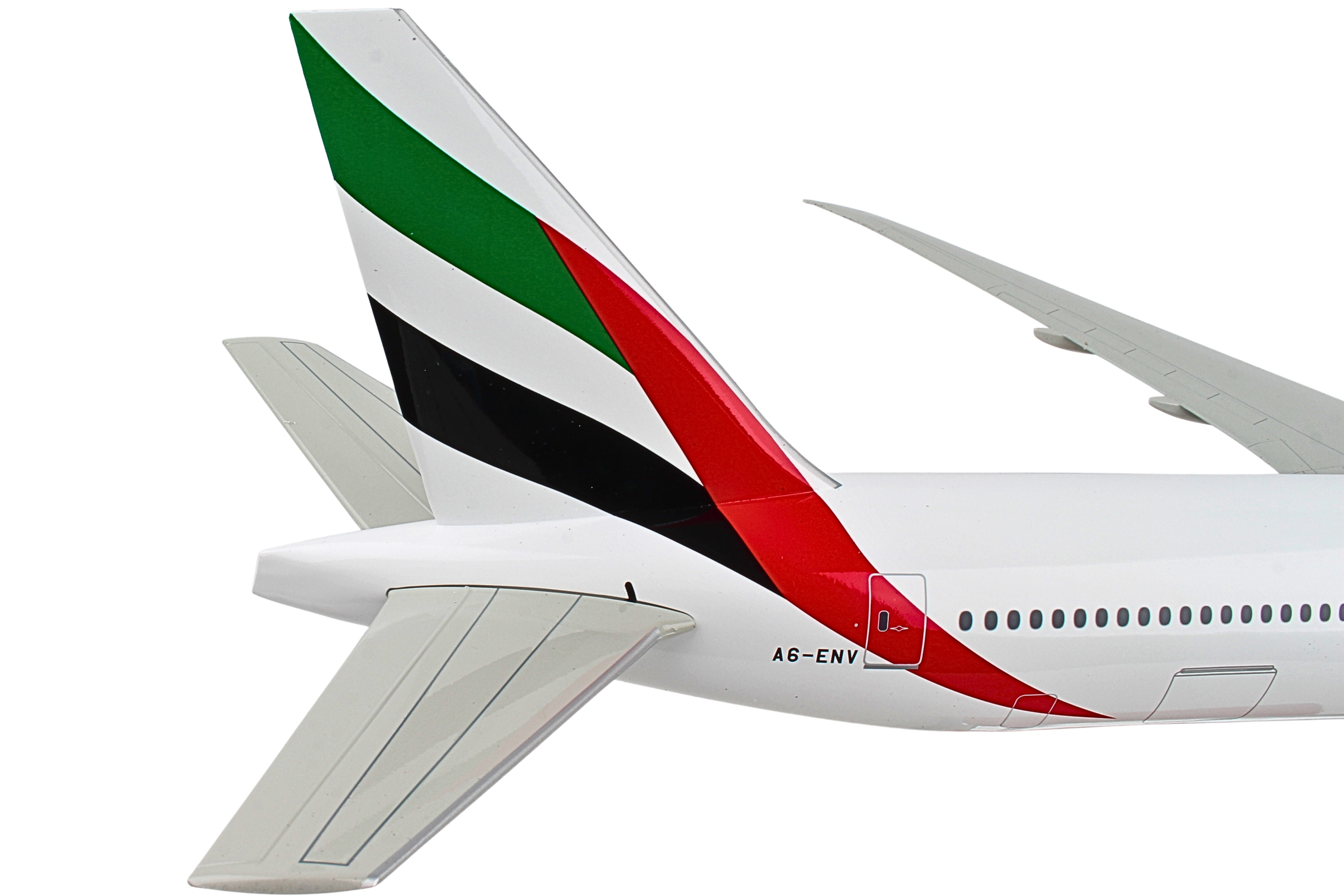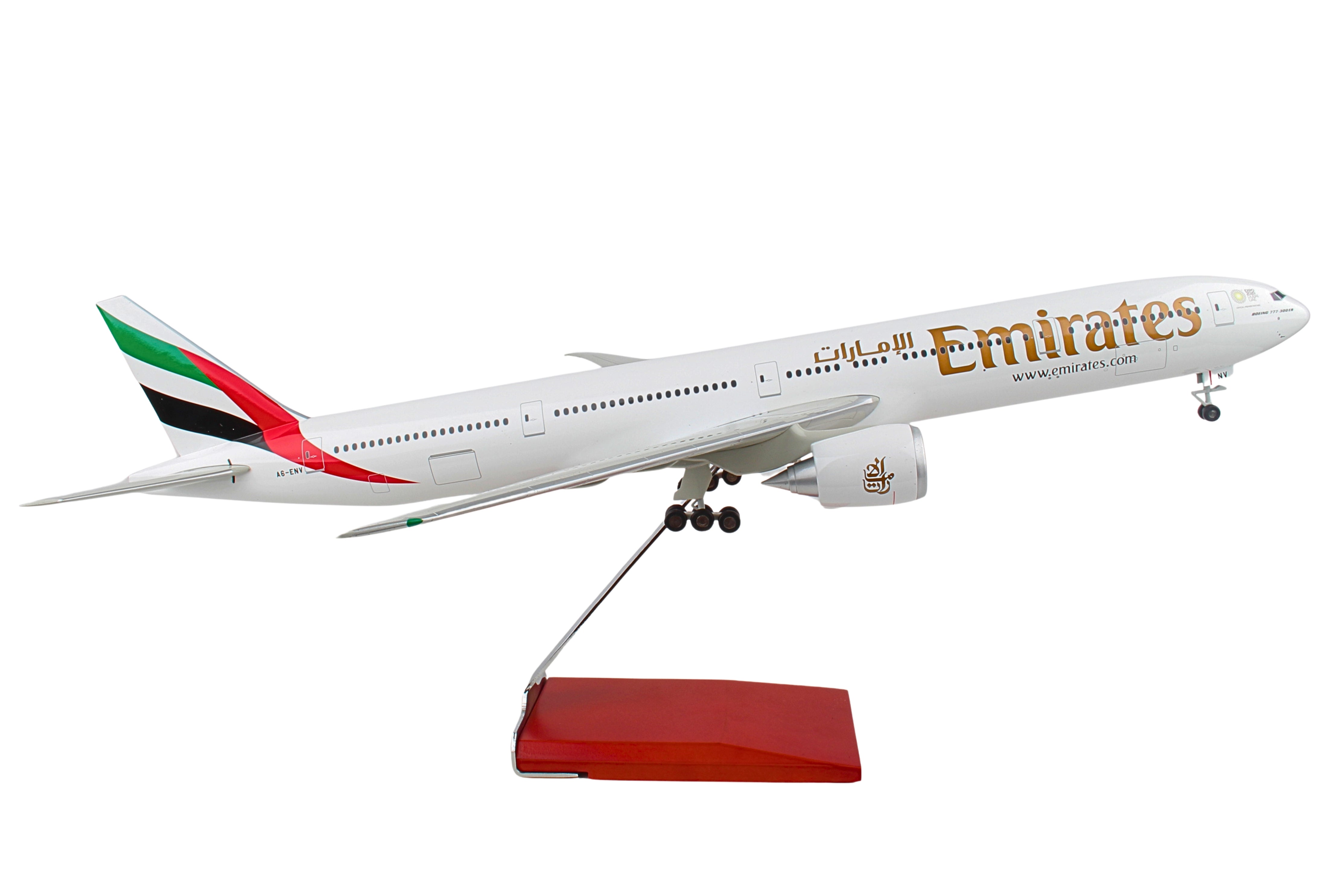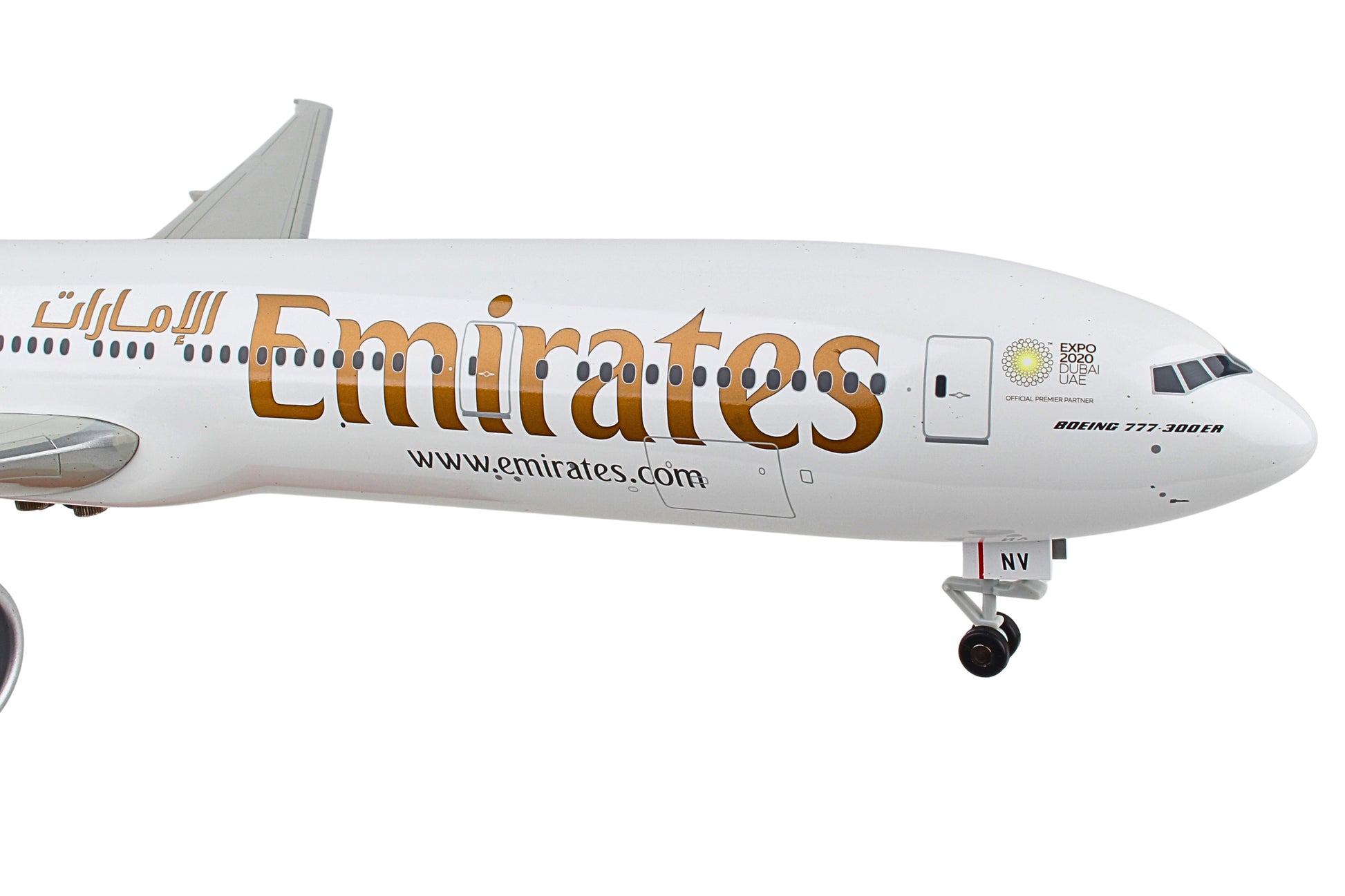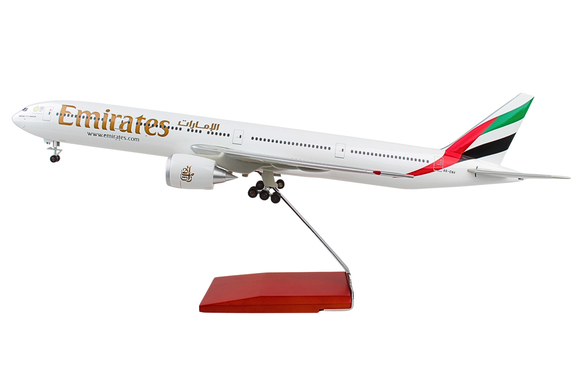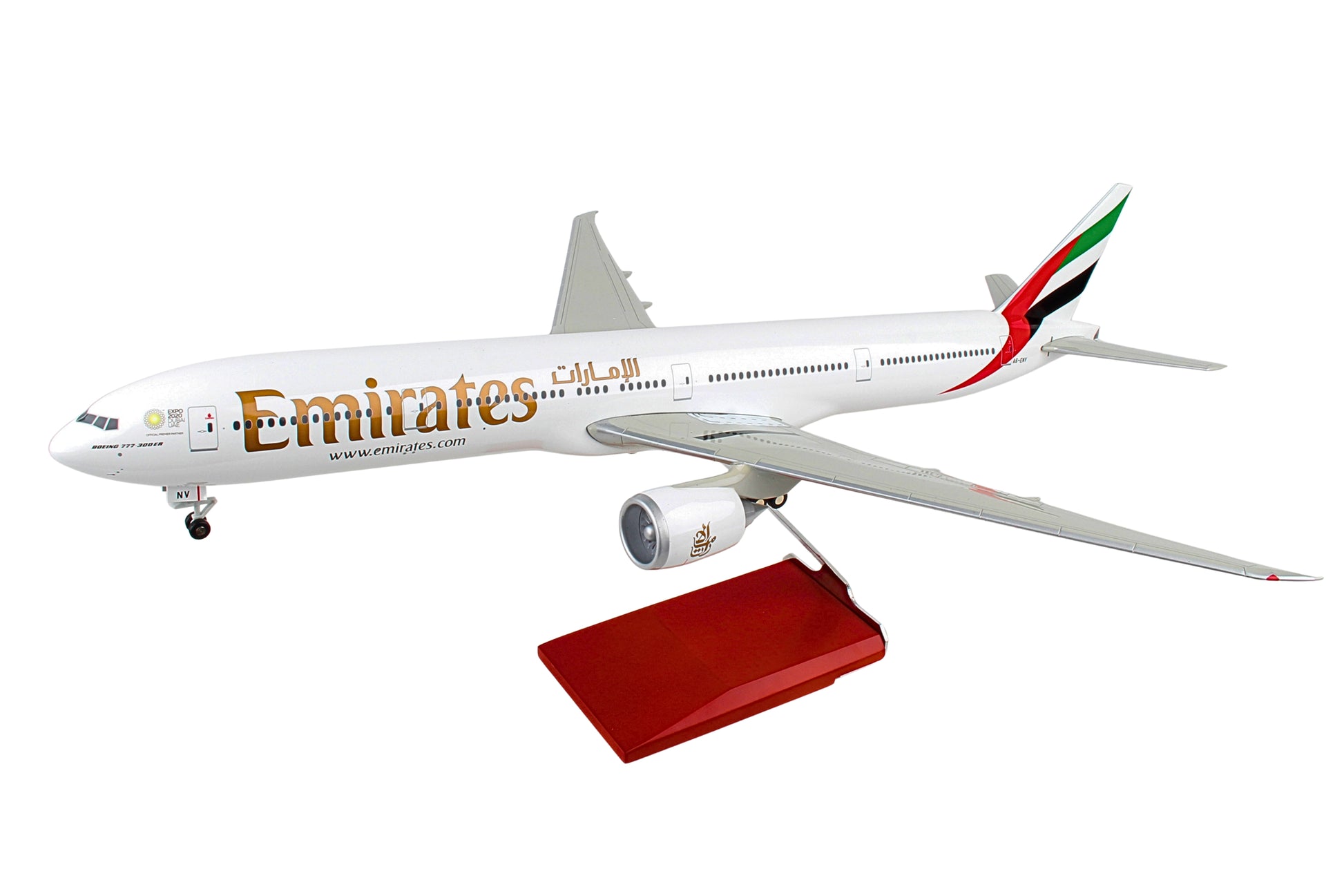 SKYMARKS EMIRATES 777-300ER EXPO 1/100 W/WOOD STAND & GEAR