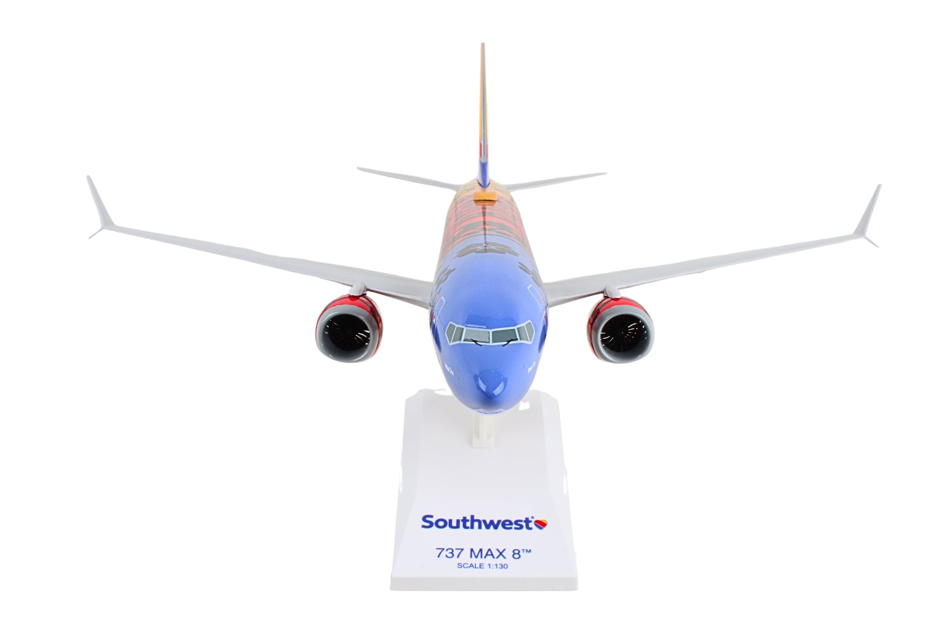 737-800MAX8 1/130 This model features solid injection molded plastic construction with highly detailed graphics. All models assemble in minutes and include a display stand. Model is approximately 12 inches long with 10 3/4 inch wingspan.