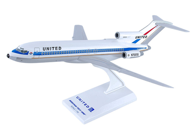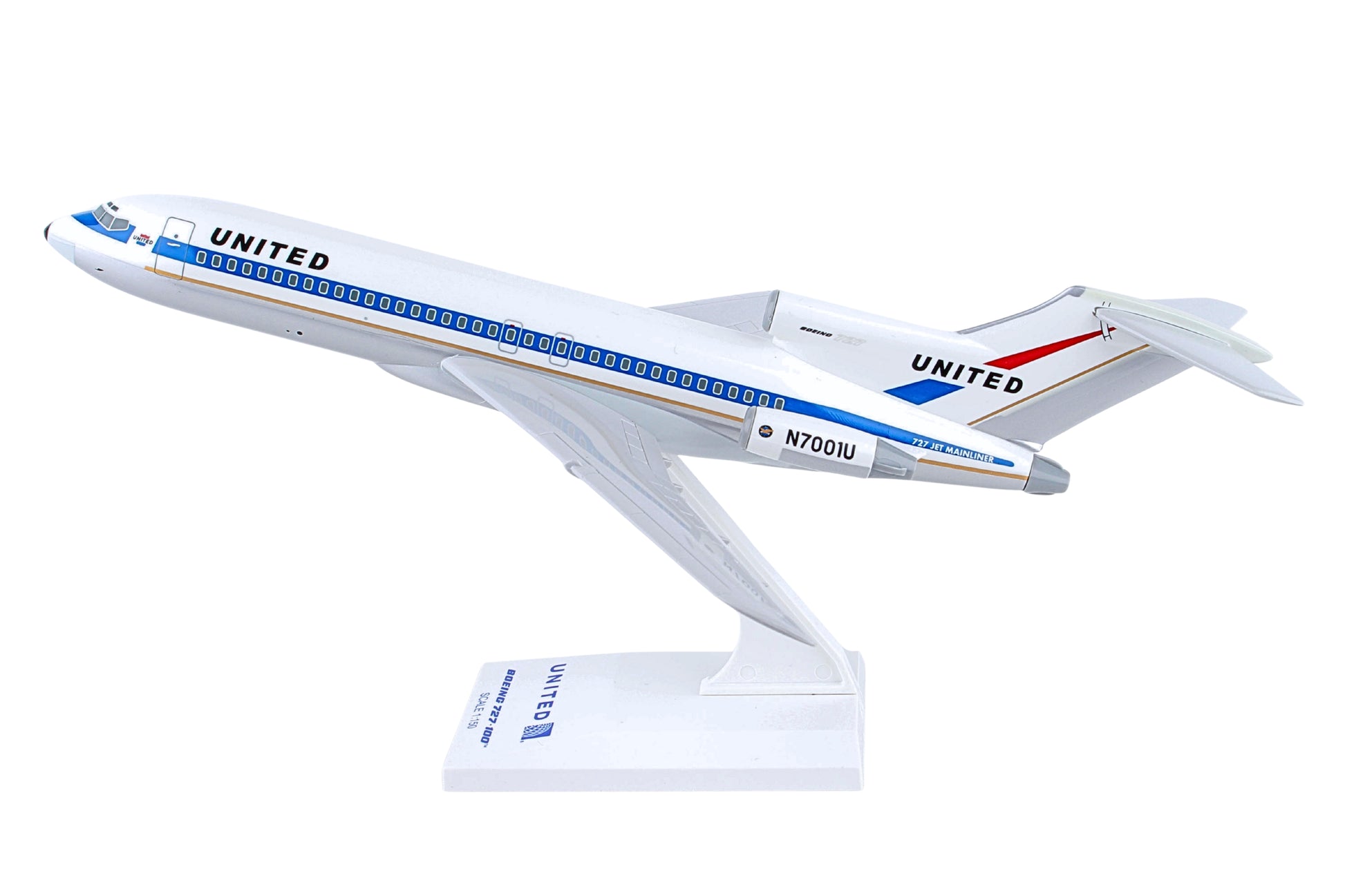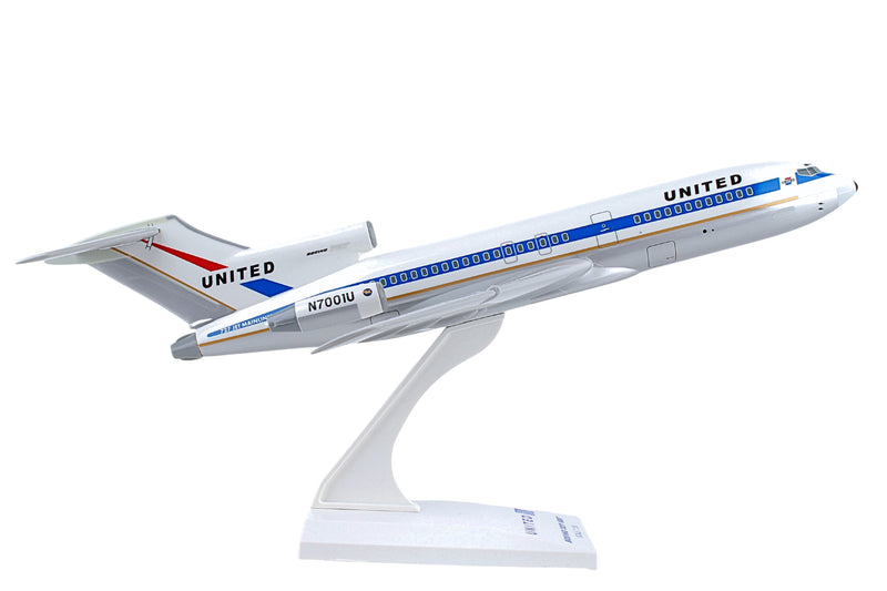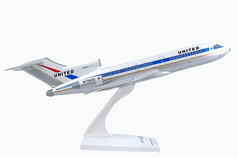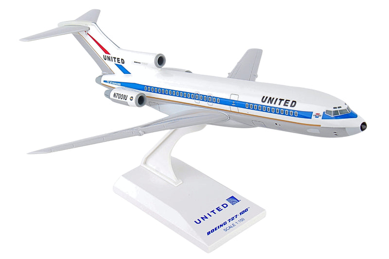 Comprising superior quality, solid injection molded plastic components with a simple snap-fit design that allows for easy assembly without the need for glue, SkyMarks 1/150 Scale United Boeing 727-100 measures approximately 11-1/8-inches long with a 7-1/2-inch wingspan and comes complete with a Display Stand. An accurate, true-to-scale reproduction of the actual aircraft, the model is great for collectors and features authentic, highly detailed graphics and markings. United and Eastern were the initial launch customers for the Boeing 727-100, which first flew in February 1963. Mainly used for domestic flights, the Boeing 727-100 is a narrow-body airliner that was developed to address the demand for smaller aircraft for use on shorter flights from smaller airports. Boeing ended production of the 727 series in September 1984, having built a total of 1,832 planes.