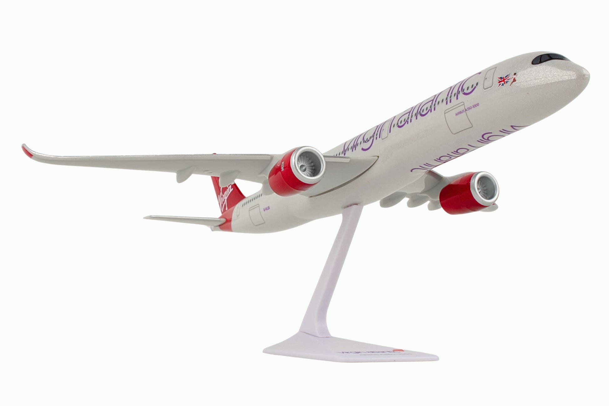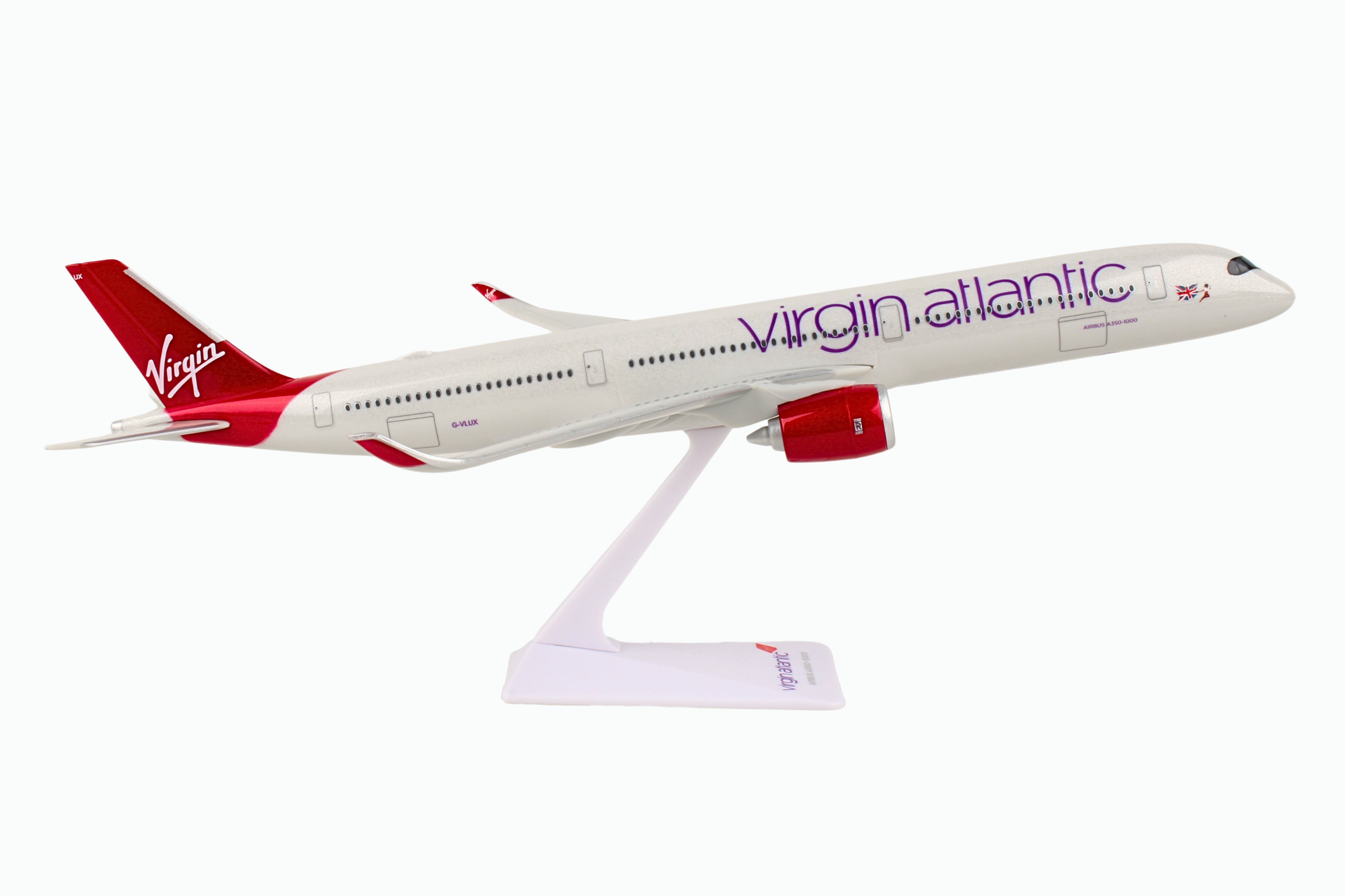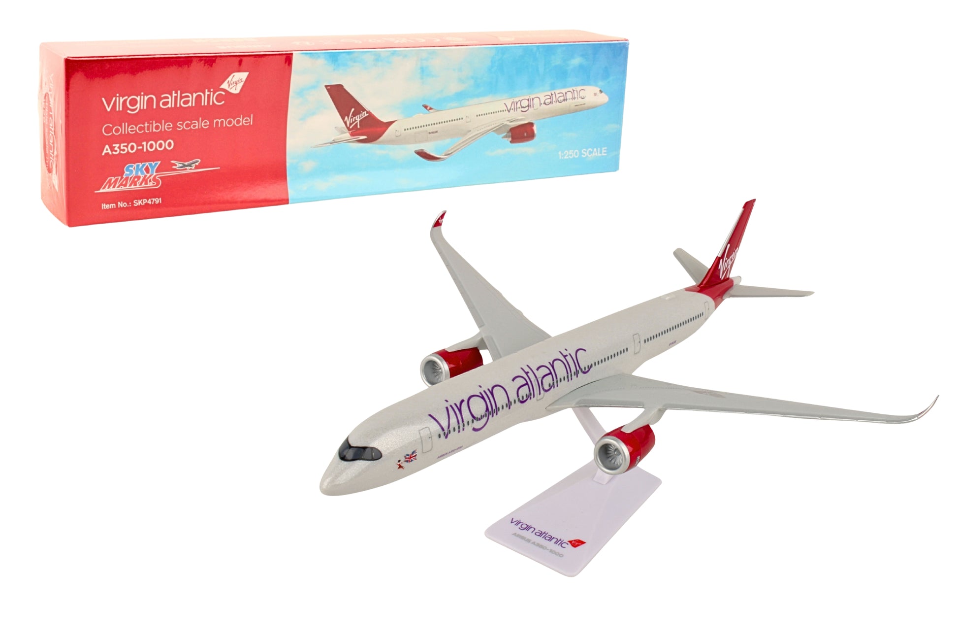 The Virgin Atlantic Airways Airbus A350-1000 is the flagship of the airline's fleet. This easily assembled collectible is 1:250 Scale. The model is 12 inches in length with a 10.5 inch wingspan. Includes display stand. Ages 14+