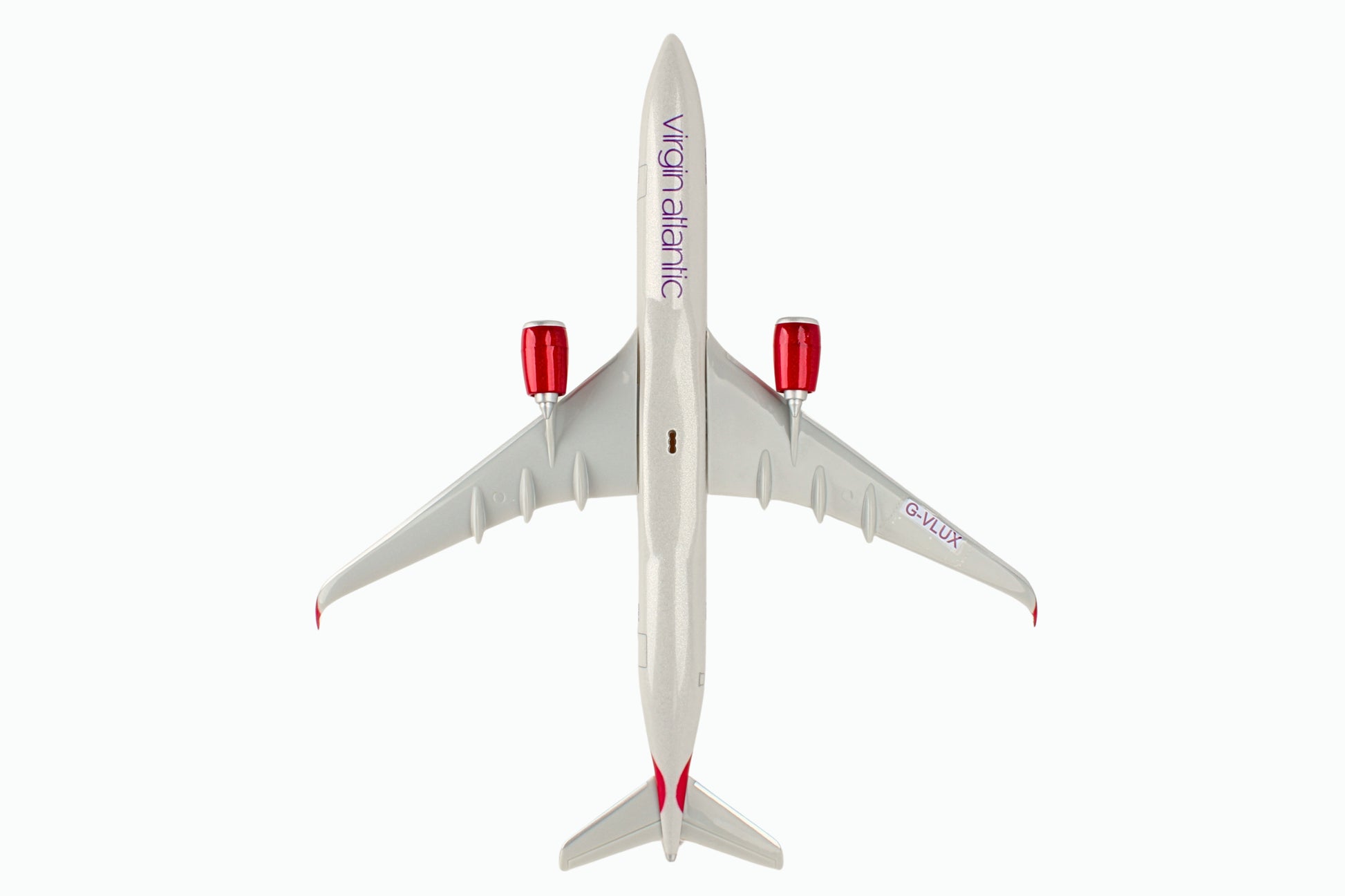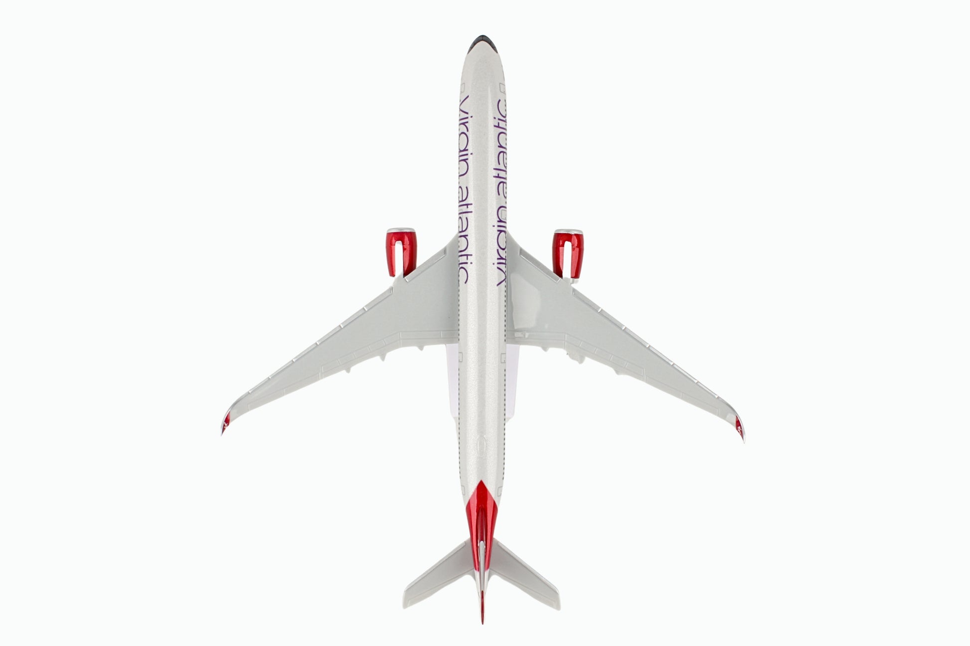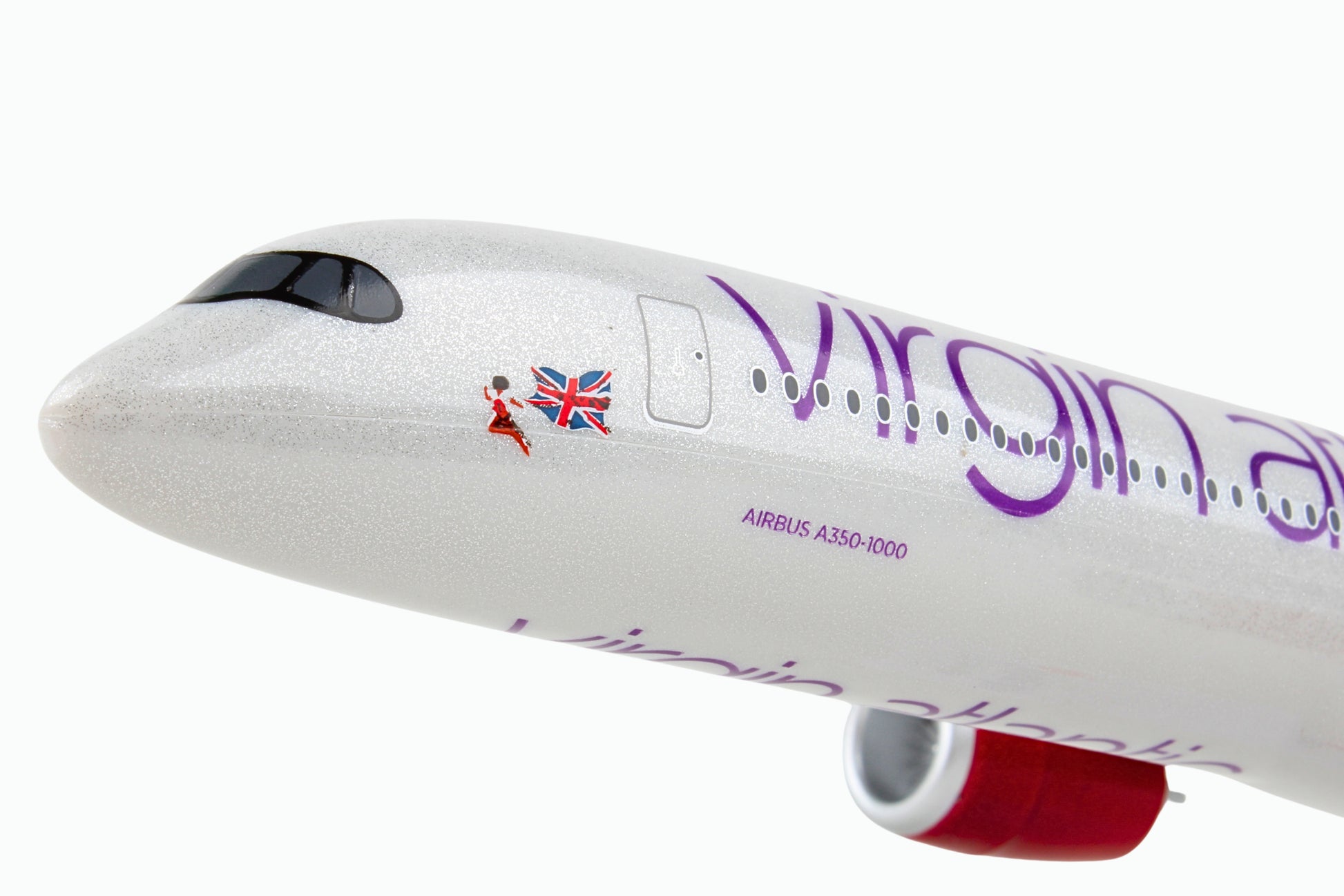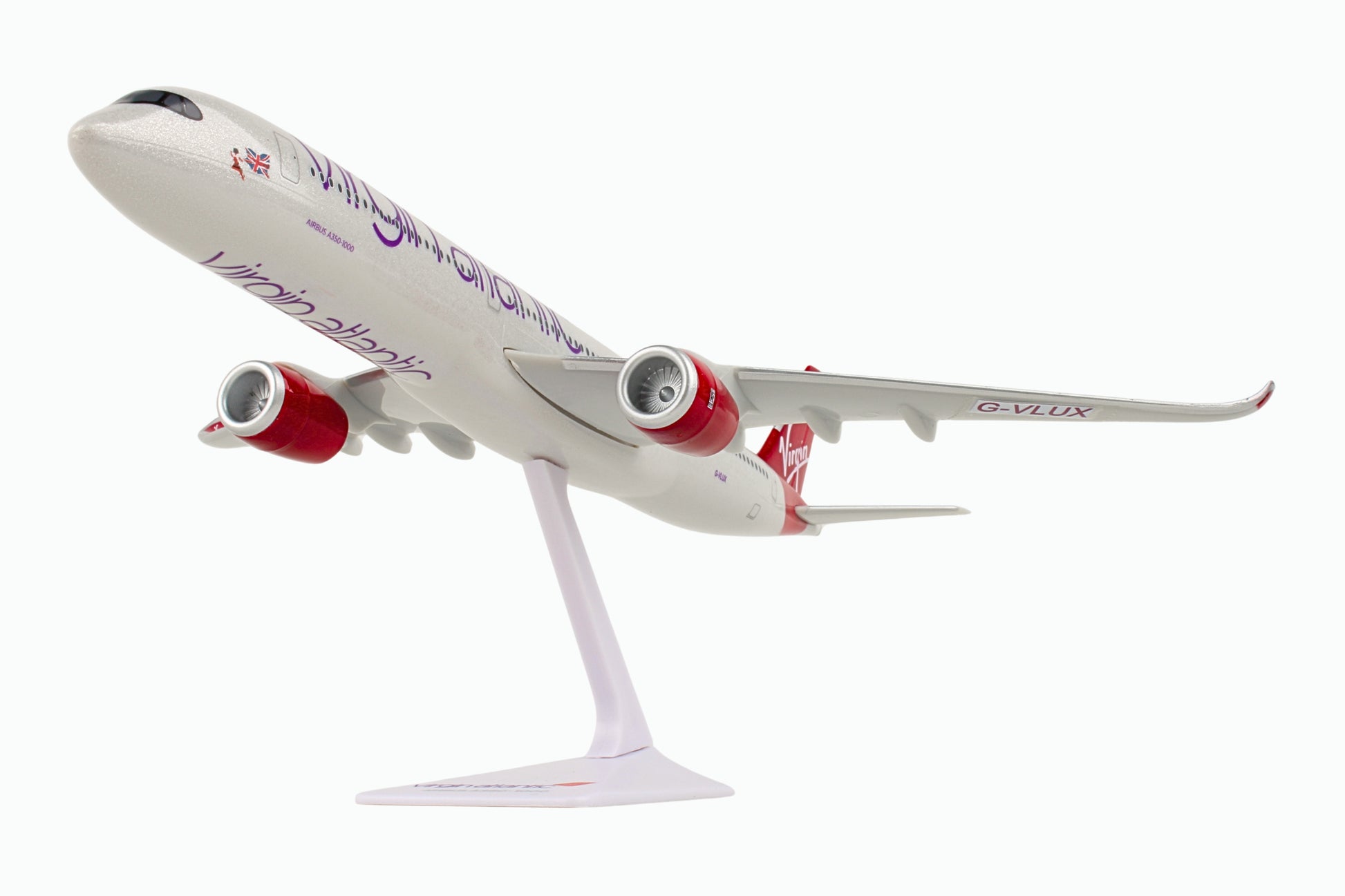The Virgin Atlantic Airways Airbus A350-1000 is the flagship of the airline's fleet. This easily assembled collectible is 1:250 Scale. The model is 12 inches in length with a 10.5 inch wingspan. Includes display stand. Ages 14+
