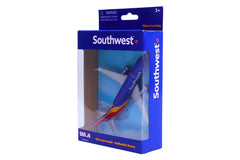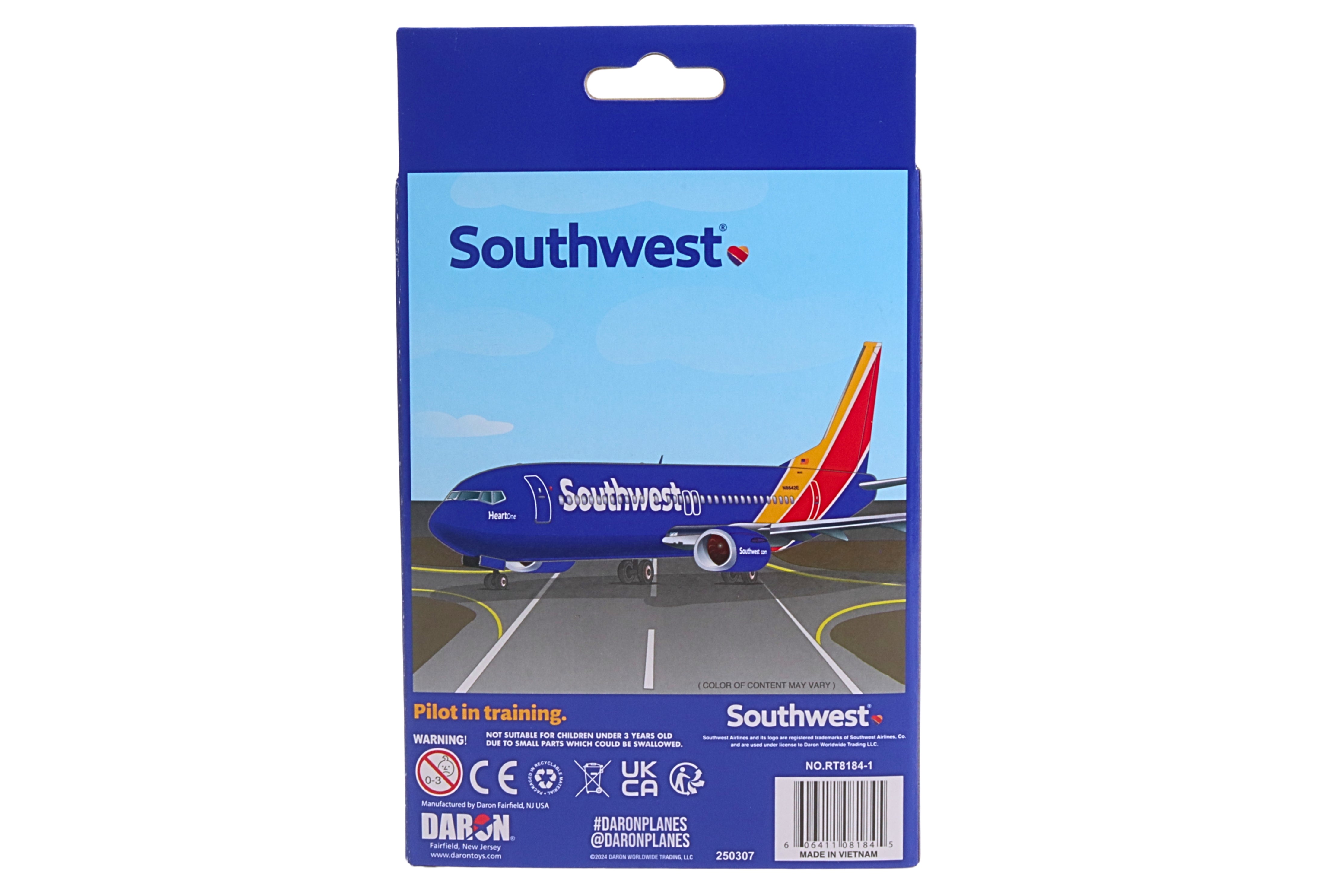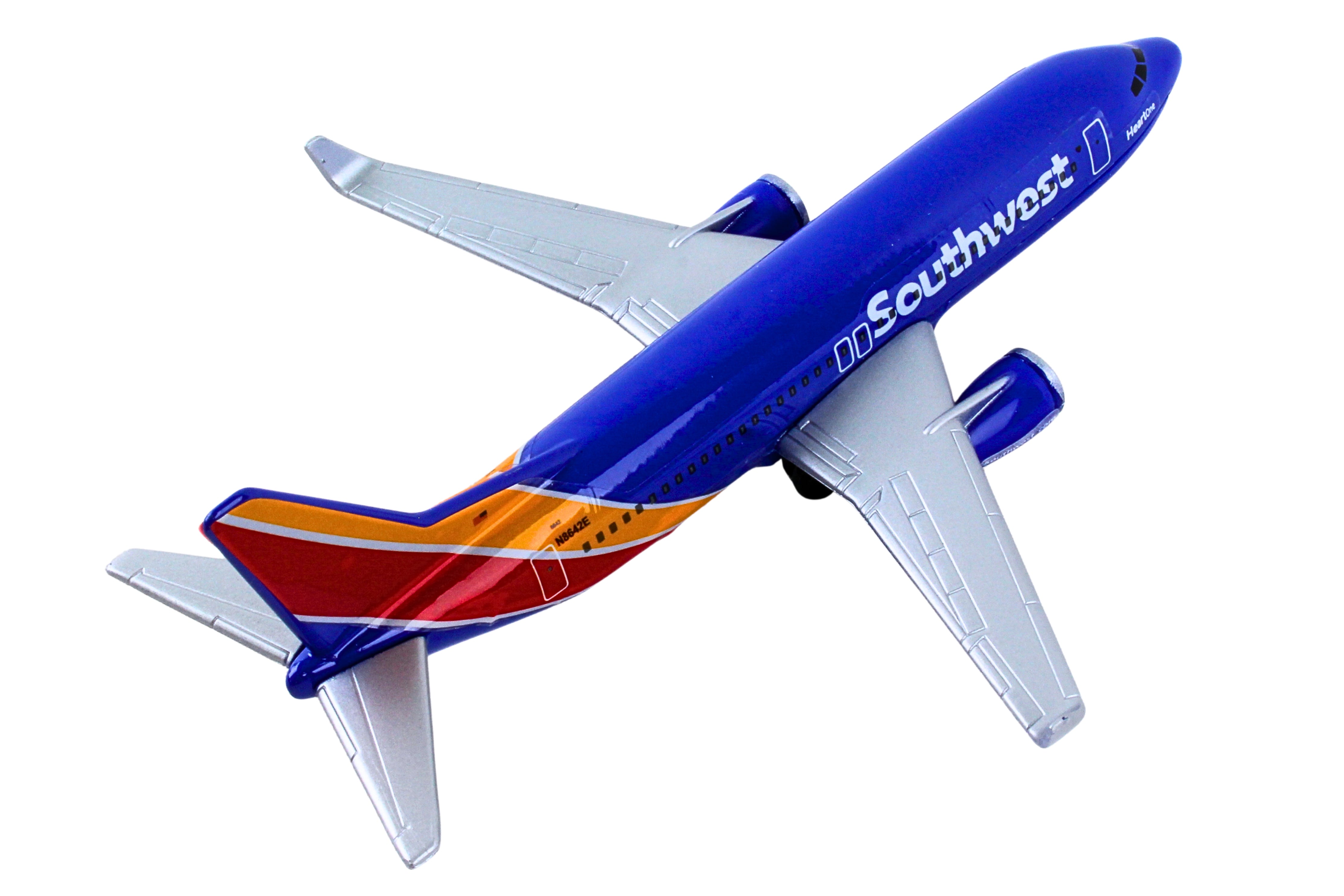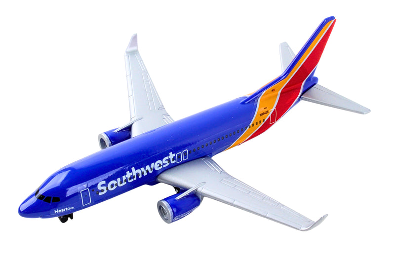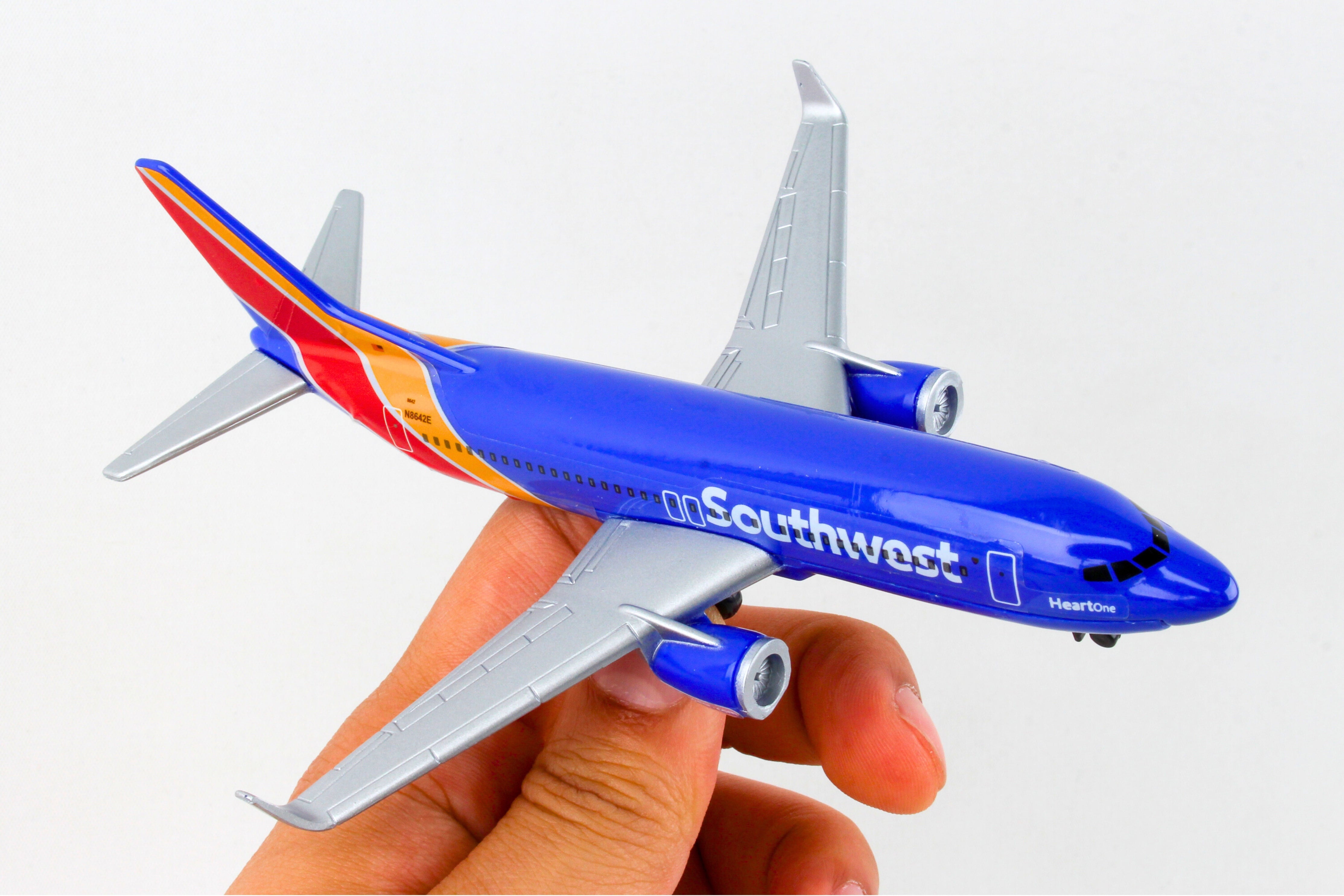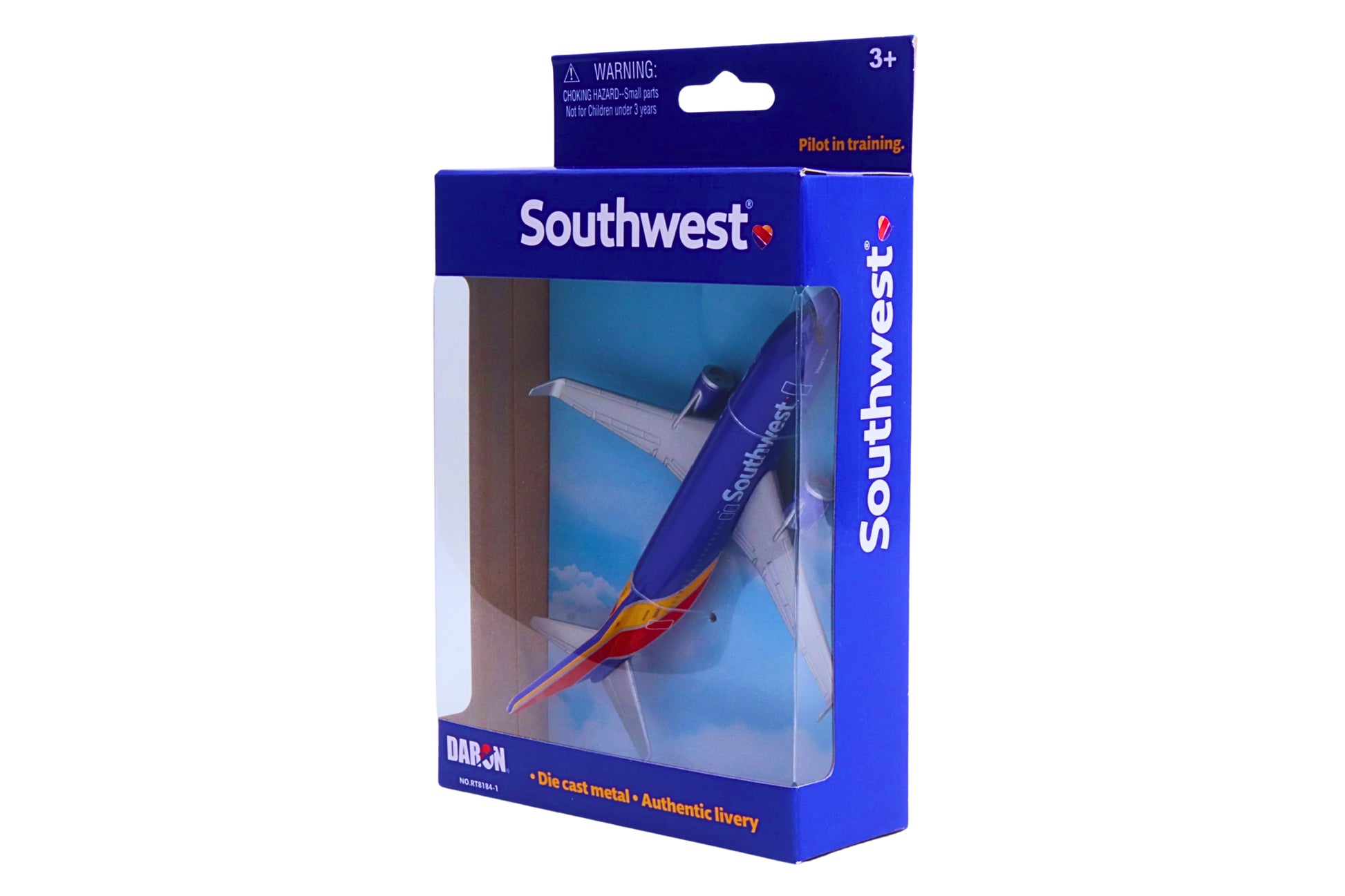 This Southwest airplane is made out of die-cast metal and durable plastic. Logo and markings are all certified by Southwest! The model is approximately 6 inches in length and has a 5 inch wingspan. Recommended for children Ages 3+.