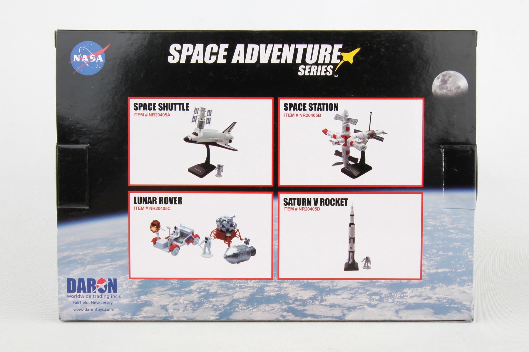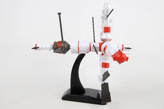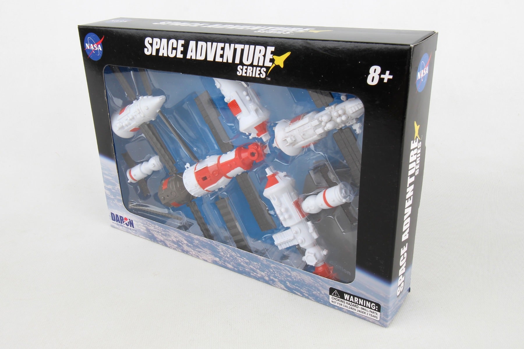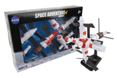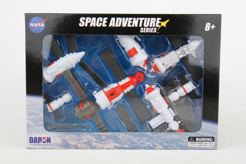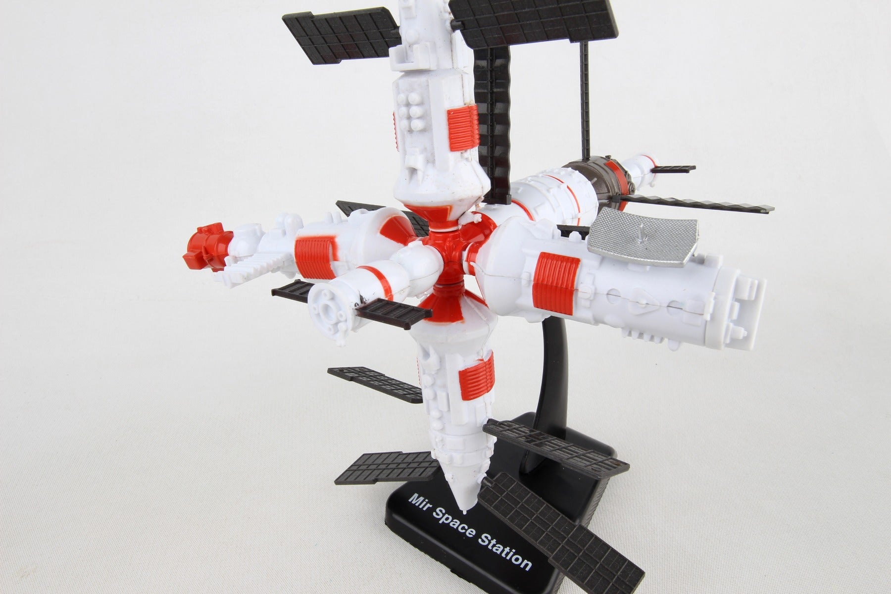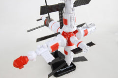 This plastic Space station set comes with display stand. Approximately 5 inches x 5 inches once assembled. Ages 8+