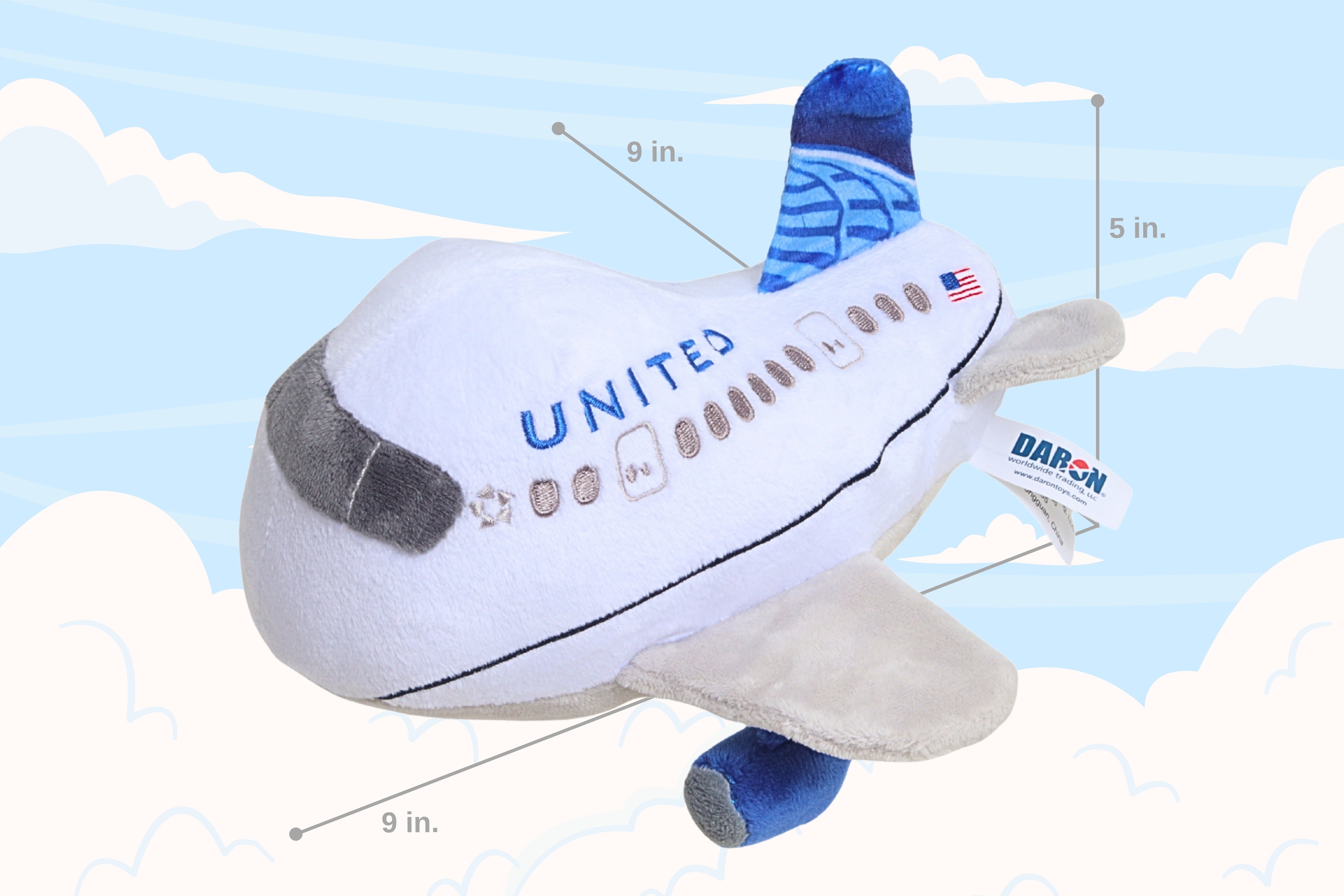 Comforting for any kid who simply wants to have a good friend close by, your child will love cuddling up with United Airlines Plush Airplane. Manufactured by hand, The Plush Airplanes are easy to keep clean and can be hand washed with a sponge using light soap and water. Measures approximately 9" (L) x 9" (W) x 5" (H). Recommended for children ages 3 and up.