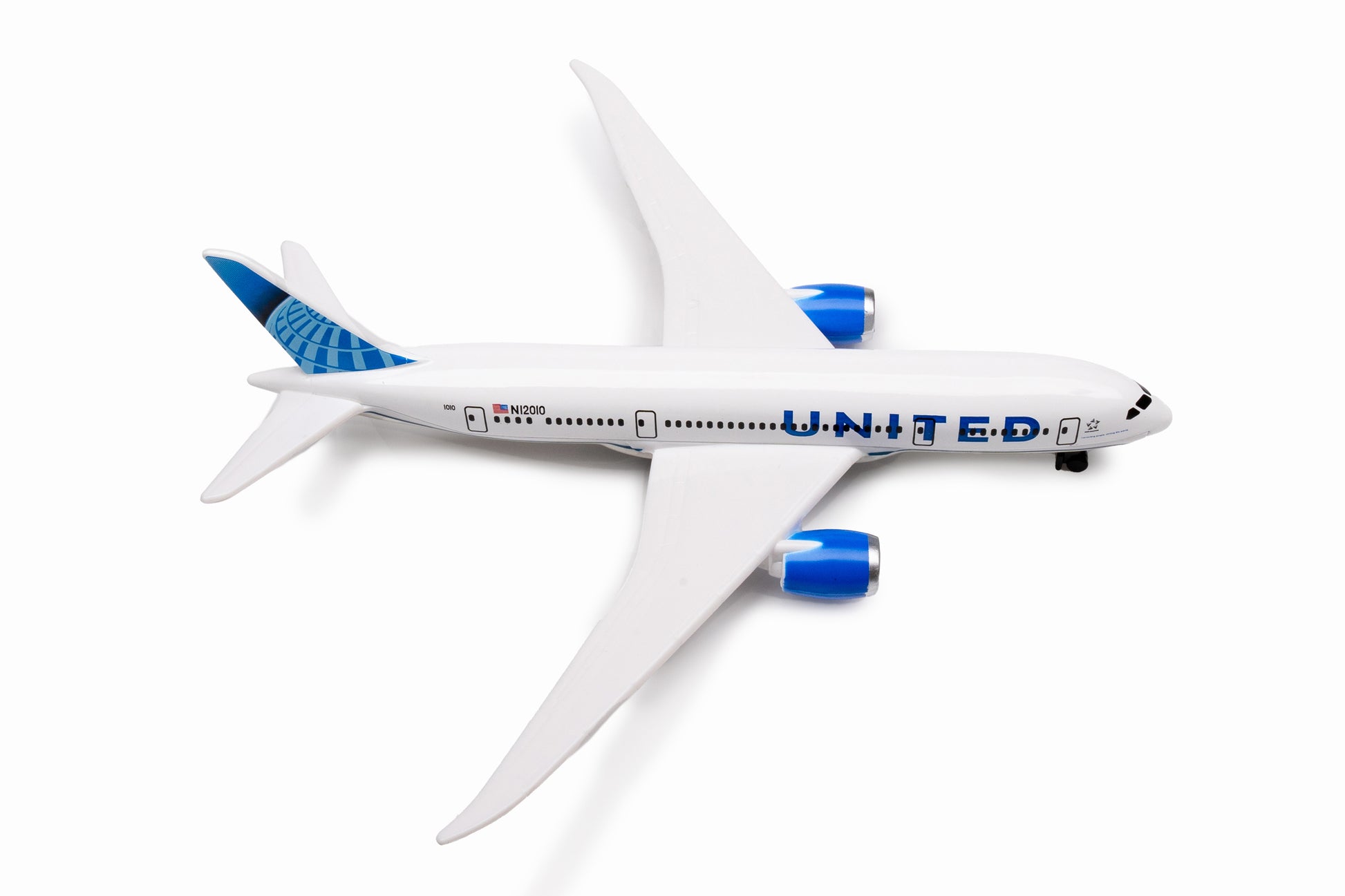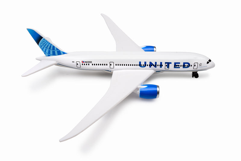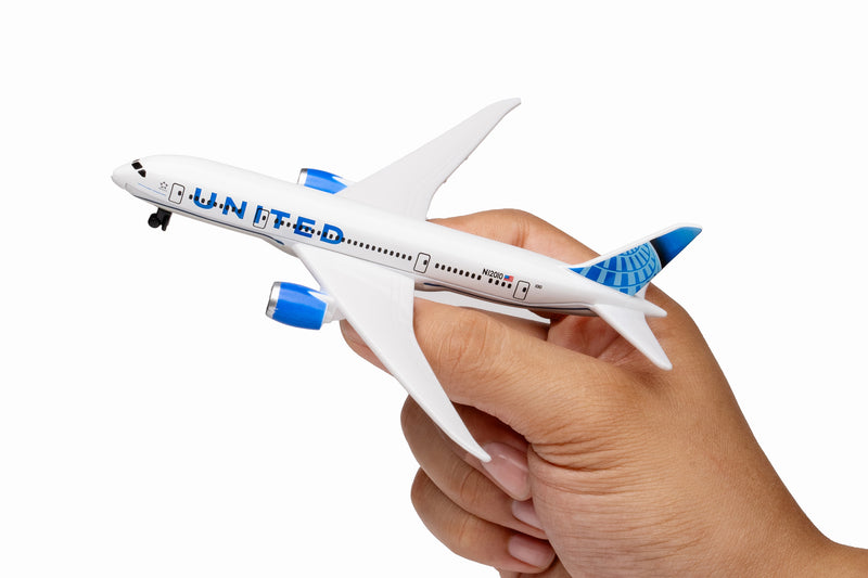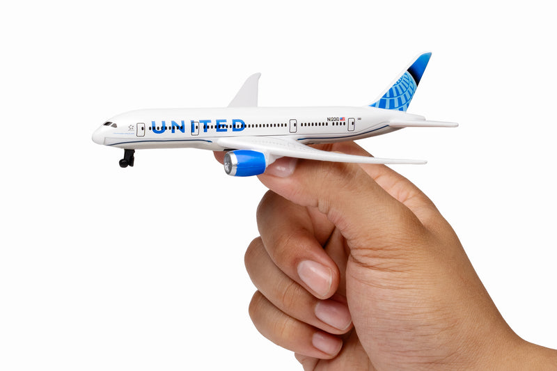 Fueled by your budding pilot's imagination, the DARON United Airlines single Plane is ready to soar right out of the package on journeys to faraway, mysterious places around the world. Constructed from diecast metal and plastic parts with an authentic livery, the DARON United Airlines Single Plane even has rolling wheels to ensure your furniture and floors remain unblemished during taxiing, takeoffs and landings. Perfect for little hands, the DARON Single Plane measures approximately 5-1/2-inches (L) x 5 3/4-Inches (W) x 1-Inch (H) and is intended for ages 3 and up.