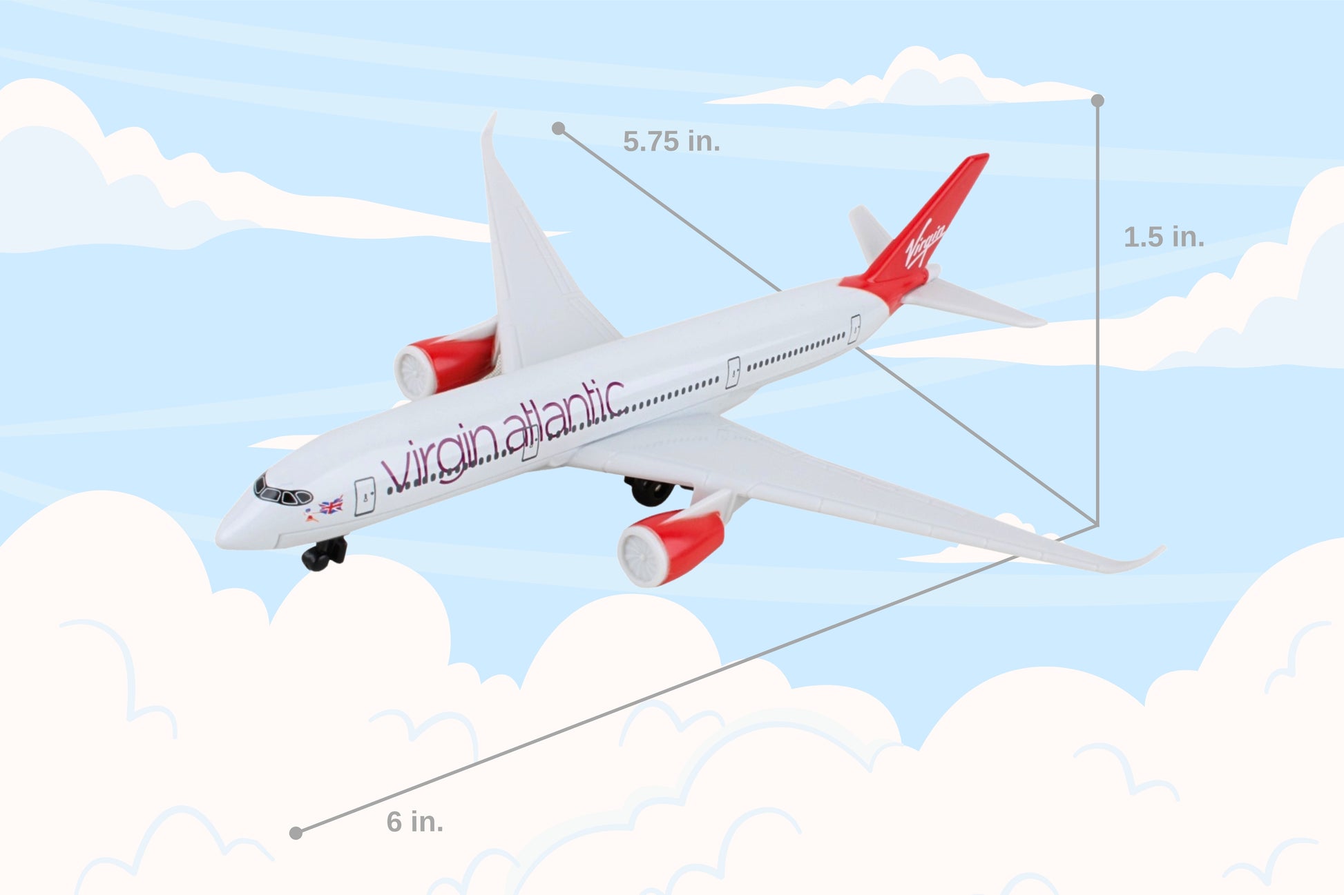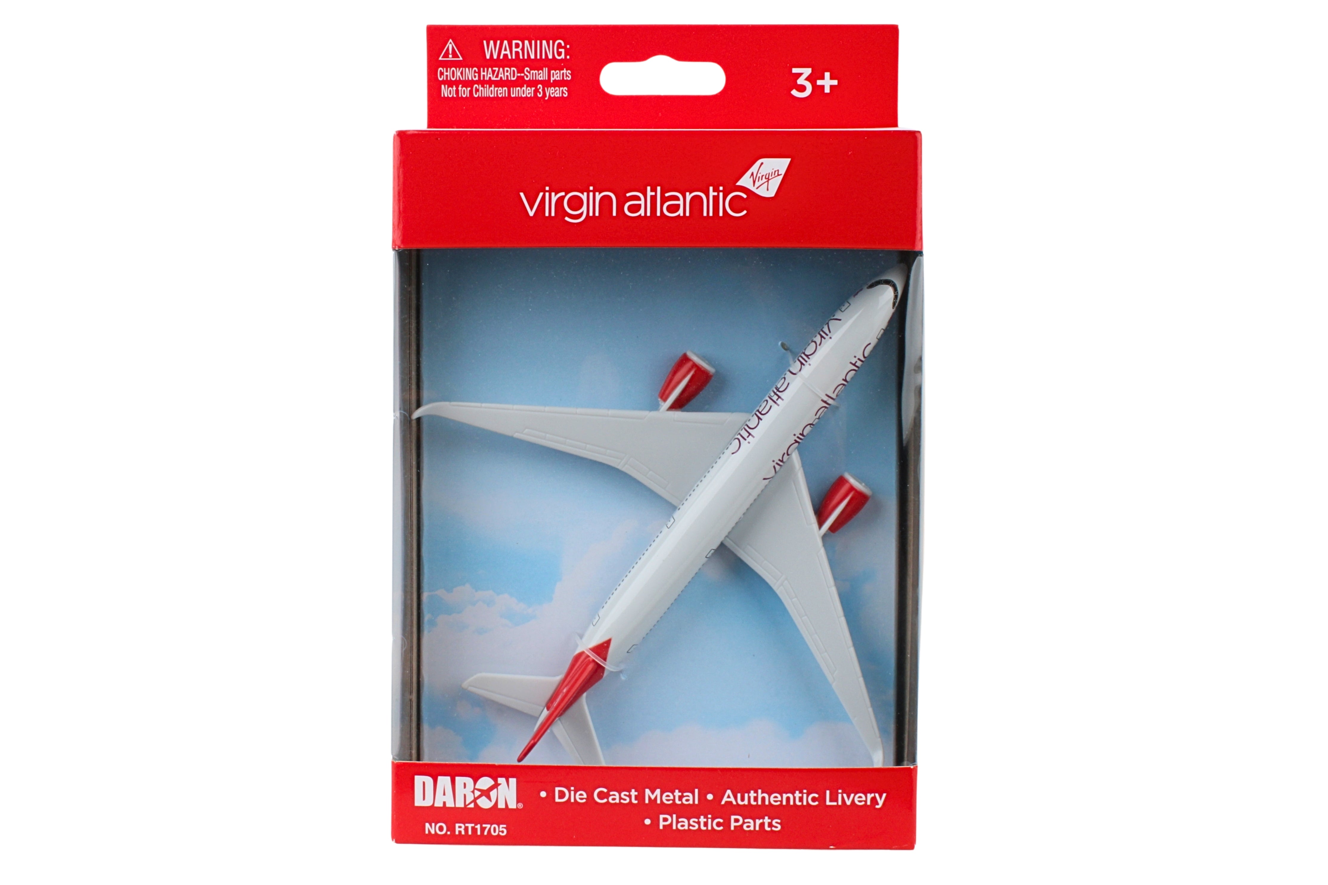 This Virgin Atlantic single plane is die-cast with plastic parts. Item is approximately 6 inches long with 5 3/4 inch wingspan. Ages 3+